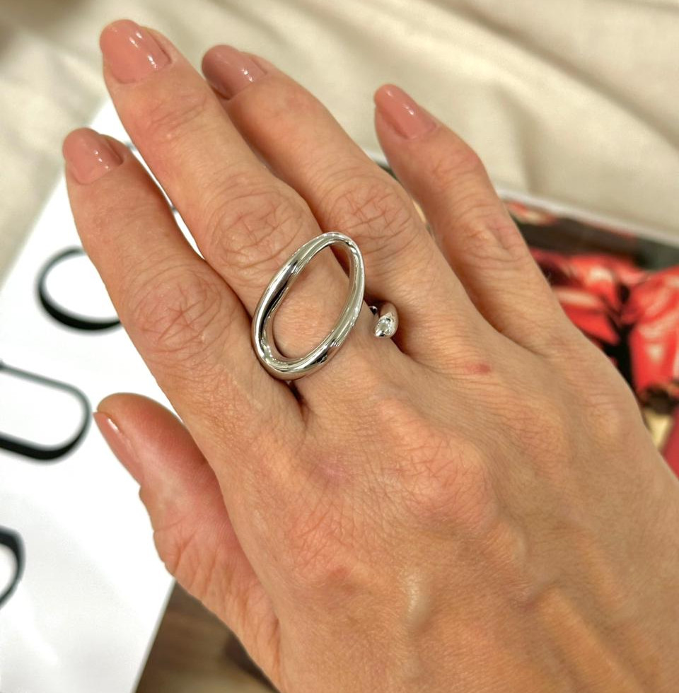 Minimalista e moderno, este anel em ródio traz um design orgânico e sofisticado que foge do óbvio. Seu formato irregular cria um efeito contemporâneo e cheio de personalidade.