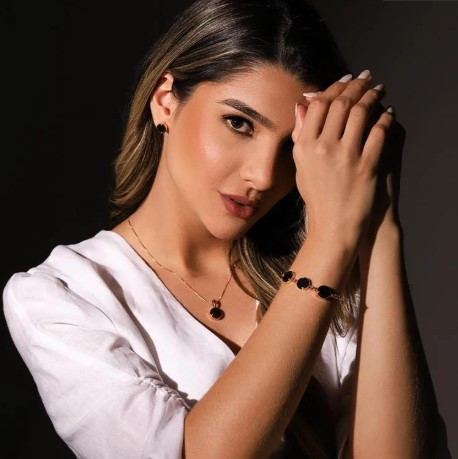 Conjunto colar e brincos redondo em Hematita
